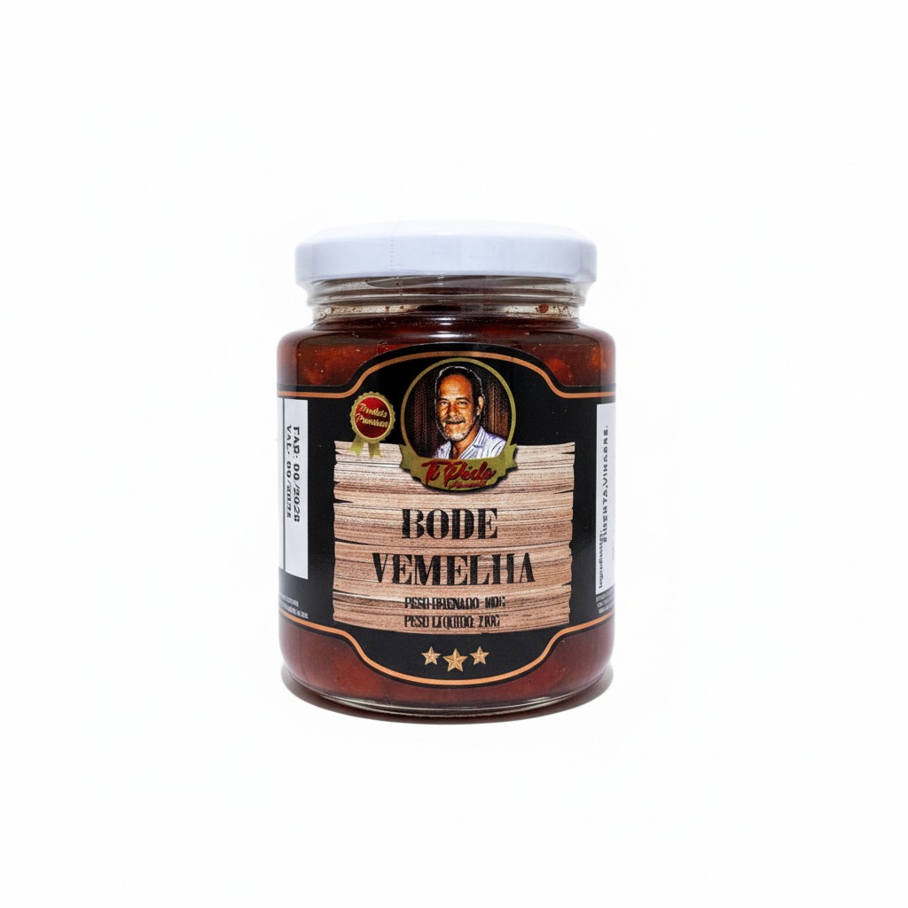 A pimenta Bode Vermelha vem em pote de vidro com 100g líquidos, mantendo frescor e aroma. Produto conservado que garante durabilidade sem perder a qualidade do sabor característico da pimenta malagueta. Ideal para uso direto em receitas ou como acompanhamento para realçar pratos variados.