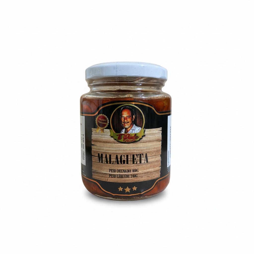 Pimenta Malagueta em conserva na cachaça, pronta para realçar suas receitas com sabor autêntico e picância controlada.